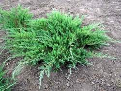 Низкий раскидистый кустарник. В молодом возрасте характеризуется довольно сдержанным ростом, однако, по мере разрастания корневой системы становится экспансивным и довольно быстро захватывает большие территории. Хвоя игольчатая сизо-зеленая, зимой приобретает бронзовый оттенок. Плоды — шишкоягоды с восковым налетом темно-синего цвета.