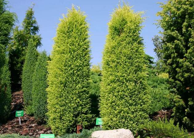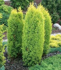 Можжевельник обыкновенный Gold Cone (Голд Коун). Узкоконический хвойный вечнозеленый кустарник с плотной регулярной кроной. Растет медленно (примерно 10 см в год). Во взрослом состоянии достигает двухметровой высоты. Летом в период активного роста молодые побеги имеют ярко-желтую окраску, к осени становятся желто-зелеными, а к зиме могут стать бронзовыми.