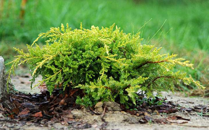 Можжевельник средний Gold Star (Голд Стар). Прекрасный низкорослый кустарник с роскошной раскидистой кроной и горизонтально расположенными побегами. Хвоя игольчатая или чешуйчатая, яркой золотисто-желтой окраски, неколючая.