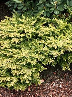 Можжевельник Goldschatz (Голдшатц). Низкий почвопокровный сорт можжевельника обыкновенного. Диаметр кроны 1,5м. Растет медленно. Хвоя игольчатая, мягкая, толстая, летом золотистая, весной с оранжевым оттенком, к зиме буреет.