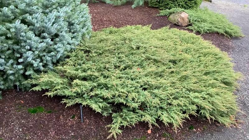 Мягкая светло-зеленая чешуйчатая хвоя делает кустарник похожим на ковер. Годовой прирост — 15 см. Любим садоводами и ландшафтными дизайнерами за возможность создания можжевеловых "газонов".