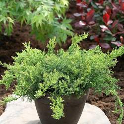 Хвоя чешуйчатая, очень мелкая, сизо-зеленая. К почве нетребователен. Светолюбив, но переносит незначительное затенение. Засухоустойчив. Хорошо сочетается с вересками и эрикой, с почвопокровными формами сосны, розами, декоративными злаками.