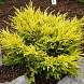 Можжевельник Lime Glow (Лайм Глоу). Замечательный сорт с симметричной распростертой округлой кроной канареечно-лимонного цвета. Высота взрослого растения — 0,4 м, диаметр — 1,5 м. Хвоя очень мелкая, игольчатая осенью становится бронзовой.