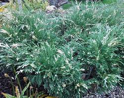 Можжевельник казацкий Variegata (Вариегата) купить в интернет-магазине Делёнка. Плотный вечнозеленый хвойный кустарник. Ежегодный прирост — 7-8 см. Полураскидистая стелющаяся зеленая крона с небольшими нерегулярными вкраплениями кремового цвета и шишкоягодами синего цвета.
