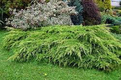 Хвойный вечнозеленый кустарник с широкой, раскидистой кроной. Во взрослом возрасте может достигать высоты и диаметра 2,5-3 м. Скорость роста средняя. Побеги приподнятые с загнутыми вниз концами. Хвоя светло-зеленая, в основном чешуйчатая, ближе к основанию ветвей игольчатая. На солнце хвоя может приобретать голубоватый оттенок.