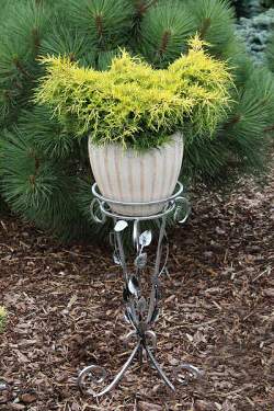 Можжевельник Yellow Sapphire (Йеллоу Сапфаер). Медленнорастущий можжевельник очень сжатой плоско-шаровидной формы, после 10-ти лет высота около 30 см и ширина около 100 см. Хвоя жёлтая весь год. Место солнечное. К почве и влаге нетребователен. Зона 4 (до -29°С).