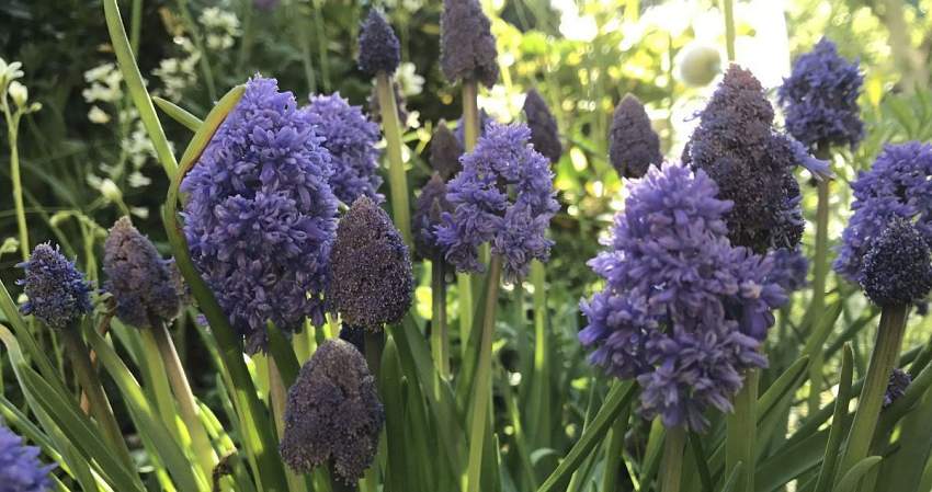 Мускари очень напоминают миниатюрные гиацинты: их безлистные цветоносы увенчаны плотными кистевидными соцветиями, собранными из крохотных колокольчиков. Прекрасно растут в полутени и на солнечных местах. Неприхотливы. Зимостойки. Мускари нельзя высаживать на пониженных участках, так как они не выносят продолжительного застоя воды. Нетребовательны к почве, но при хорошем уходе образуют более крупные луковицы и более мощные соцветия.
