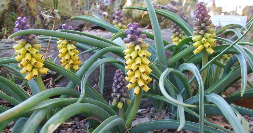 Мускари очень напоминают миниатюрные гиацинты: их безлистные цветоносы увенчаны плотными кистевидными соцветиями, собранными из крохотных колокольчиков. Прекрасно растут в полутени и на солнечных местах. Неприхотливы. Зимостойки. Мускари нельзя высаживать на пониженных участках, так как они не выносят продолжительного застоя воды. Нетребовательны к почве, но при хорошем уходе образуют более крупные луковицы и более мощные соцветия.