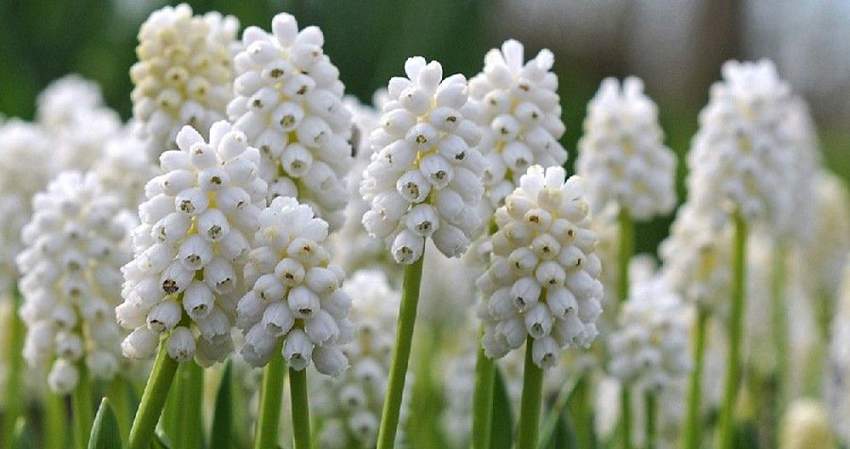 Мускари Venus (Венус). Высота растения 15-20 см. Цветки белые.