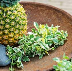 Мята Pinedo (Пинедо). Сортовая мята, обладающая нежным ананасным ароматом. Благодаря тому, что у нее отсутствует резкий холодящий вкус, она используется для чая, холодных напитков и десертов. Высота 30-40 см.