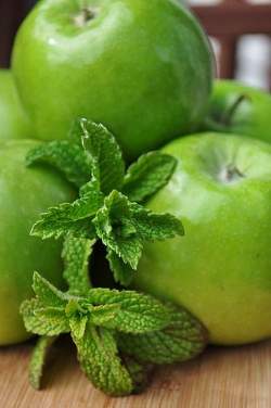 Мята Pomo Petit (Помо Петит). Имеет аромат яблока. Растение компактное, листья светло-зеленые, рельефные. Растение декоративно в течение всего сезона.
