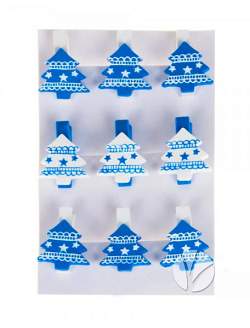Набор из девяти елочек на прищепках. Удобно закрывать пакетики с подарками, открытки. Можно использовать как украшение на елку.