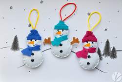 Елочная игрушка "Снеговик" выполнена из фетра.