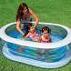 Надувной детский бассейн выполнен в виде овала, его стенки полностью прозрачные, на дно бассейна нанесен яркий рисунок красивых рыбок. Стенки бассейна - прозрачные, поверхность дна имеет противоскользящее покрытие.