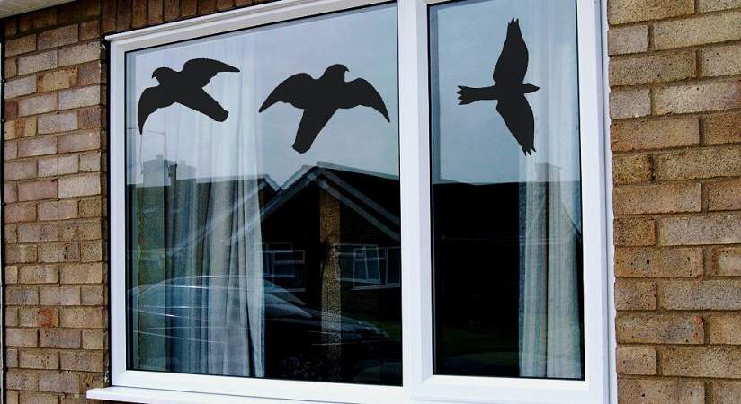 Наклейки-стикеры Силуэты хищных птиц. Для жителей высоких домов существует такая проблема, как птицы, которые бьются о окна и даже разбивают их. Методов борьбы с этим несколько - установка ультразвукового отпугивателя на подоконник или наклейка на окно силуэта хищной птицы для отпугивания птиц на расстоянии.