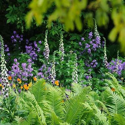 Наперстянка пурпурная Pams Choice (Пэмс Чойс) в теневом цветнике.