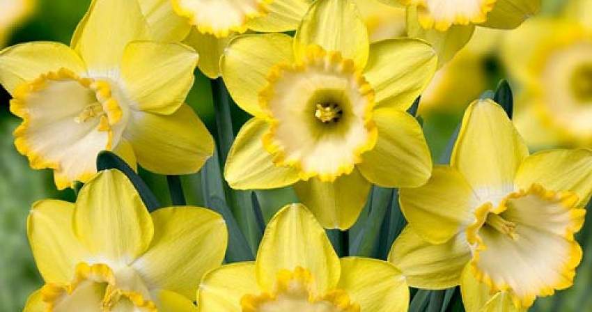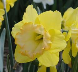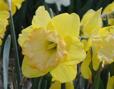 Нарцисс Alexis Beauty (Алексис Бьюти). Цветок светло-желтый, кремовая коронка с золотистым кантом, высота растения 40 см.