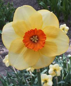 Нарцисс Altruist (Альтруист). Нарцисс довольно крупный, но с маленькой изящной короной. Лепестки желтые, корона оранжевая. Если хочется простоты, то этот нарцисс — находка. С одной стороны, классическая форма, близкая к видовой, с другой — нарядная окраска.