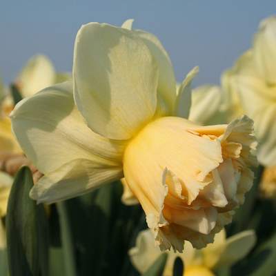 Нарцисс Art Design (Арт Дизайн). Лепестки кремовые, коронка кремово-желтая, чашевидная, махровая. Весьма необычный и привлекательный сорт. Особенно красив в букетах.
