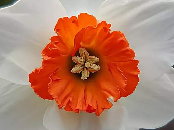 Нарцисс Bella Vista (Белла Виста). Белый с ярко-оранжевой коронкой. Высота 30-35 см.