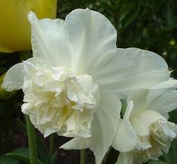 Нарцисс Calgary (Калгари). Чудо, а не нарцисс. Коронка крупная, махровая. Сам цветок раскрывается зеленоватым, а затем белеет.