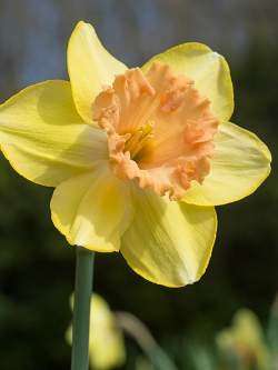 Нарцисс Color Run (Колор Ран). Желтый, оранжевая коронка гофрированная по краю, высота растения 40 см.