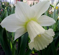Нарцисс Desdemona (Дездемона). Цветок крупный с огромной гофрированной коронкой. Один из самых привлекательных сортов нарцисса. Высота растения 35 см.