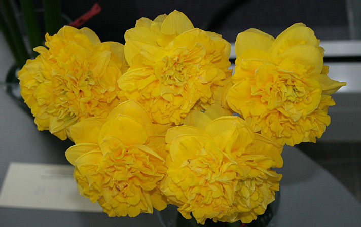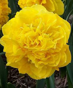 Нарцисс Eastertide (Истертайд). выделяется густомахровыми желтыми цветками до 10 см в диаметре. От цветков исходит приятный нежный аромат. Высота нарцисса — 35-45 см. Срок цветения: конец апреля начало мая.
