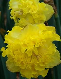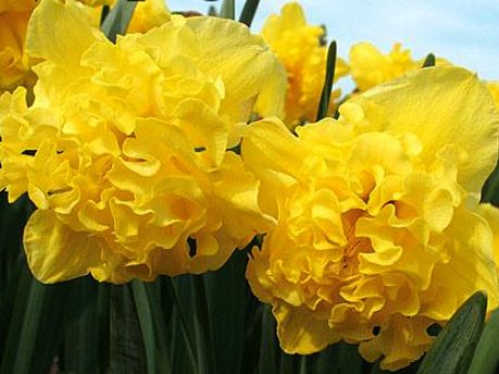 Нарцисс Flyer (Флайер). Цветок жёлтый, гофрированная коронка. В полном роспуске как шар из гофрированных лепестков. Высота растения 40 см.