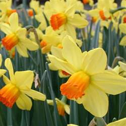 Крупная коронка оранжевого цвета, к краю более темная, гофрированная. Высота растения 45 см. Цветение раннее.