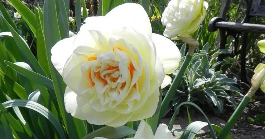 Нарциссы — многолетние луковичные растения. Очень широко применяются в садовом дизайне благодаря огромному разнообразию видов, гибридов и форм. Цветки крупные, одиночные или в кистях, часто душистые, несколько поникающие, простые или махровые, 2-6 см в диаметре. Культура более теневыносливая по сравнению, например, с тюльпанами, но на освещенных местах "урожай" их цветков и луковиц значительно выше, чем в тени. Мирятся с любой почвой, при условии, что она хорошо дренирована и плодородна. На одном месте могут оставаться 3-5 лет.