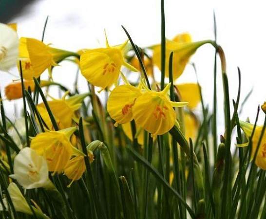 Нарцисс Golden Bells (Голден Беллз). Миниатюрный ботанический нарцисс с крупной коронкой и маленькими лепестками. Прекрасно разрастается, образует полянки. Цветет раньше других. Из одной луковки распускается целый букет.