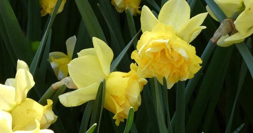 Нарциссы — многолетние луковичные растения. Очень широко применяются в садовом дизайне благодаря огромному разнообразию видов, гибридов и форм. Цветки крупные, одиночные или в кистях, часто душистые, несколько поникающие, простые или махровые, 2-6 см в диаметре. Культура более теневыносливая по сравнению, например, с тюльпанами, но на освещенных местах "урожай" их цветков и луковиц значительно выше, чем в тени. Мирятся с любой почвой, при условии, что она хорошо дренирована и плодородна. На одном месте могут оставаться 3-5 лет.