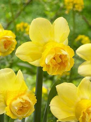 Нарциссы — многолетние луковичные растения. Очень широко применяются в садовом дизайне благодаря огромному разнообразию видов, гибридов и форм. Цветки крупные, одиночные или в кистях, часто душистые, несколько поникающие, простые или махровые, 2-6 см в диаметре. Культура более теневыносливая по сравнению, например, с тюльпанами, но на освещенных местах "урожай" их цветков и луковиц значительно выше, чем в тени. Мирятся с любой почвой, при условии, что она хорошо дренирована и плодородна. На одном месте могут оставаться 3-5 лет.