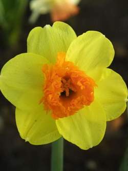 Нарцисс Modern Art (Моден Арт). Высота растения 35 см, цветок желтый с махровой оранжевой коронкой.