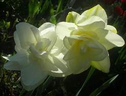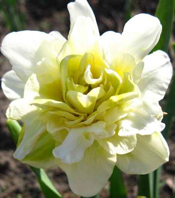 Нарцисс Obdam (Обдам). Густомахровый спорт от сорта "Ice Follies", имеет великолепные пионовидные цветки кремово-белого цвета, которые раскрываются из крупного зеленого бутона. Продолжительность цветения — от 10 дней. Нарцисс назван в честь одноименного города в провинции Северная Голландия (Нидерланды). Ароматный.