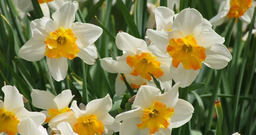 Нарциссы — многолетние луковичные растения. Очень широко применяются в садовом дизайне благодаря огромному разнообразию видов, гибридов и форм. Цветки крупные, одиночные или в кистях, часто душистые, несколько поникающие, простые или махровые, 2-6 см в диаметре. Культура более теневыносливая по сравнению, например, с тюльпанами, но на освещенных местах "урожай" их цветков и луковиц значительно выше, чем в тени. Мирятся с любой почвой, при условии, что она хорошо дренирована и плодородна. На одном месте могут оставаться 3-5 лет.
