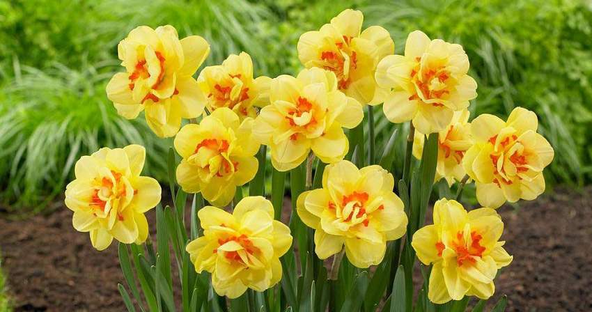 Нарциссы — многолетние луковичные растения. Очень широко применяются в садовом дизайне благодаря огромному разнообразию видов, гибридов и форм. Цветки крупные, одиночные или в кистях, часто душистые, несколько поникающие, простые или махровые, 2-6 см в диаметре. Культура более теневыносливая по сравнению, например, с тюльпанами, но на освещенных местах "урожай" их цветков и луковиц значительно выше, чем в тени. Мирятся с любой почвой, при условии, что она хорошо дренирована и плодородна. На одном месте могут оставаться 3-5 лет.