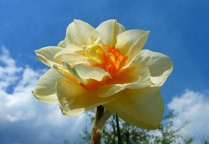 Нарцисс Texas (Тексас). Нарцисс махровый Texas (Тексас). Лепестки кремово-желтые, ярко-оранжевая "подсветка". Высота растения 35 см.