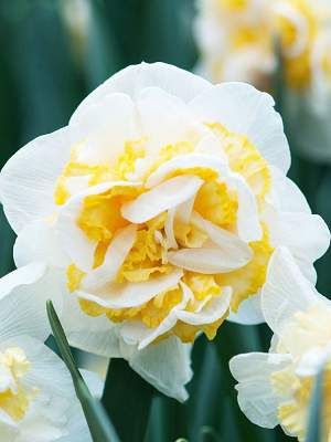 Нарцисс Westward (Вествард). Высота растения 35-40 см, изящные махровые белоснежные цветки с желтой коронкой и нежным приятным ароматом.
