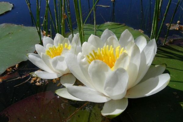 Нимфея Marliacea Albida (Марлиацея Альбида). Классическая белая кувшинка, надёжная и устойчивая в культуре. Цветки элегантной формы, диаметром 15 см, махровые (по 22-24 лепестка), появляются с июня по октябрь. Листья овальной формы, размером 28 х 24 см, блестящие, тёмно-зелёные. Оптимальная глубина для растения 0,4-0,8 м.