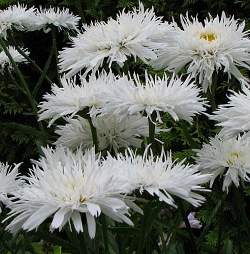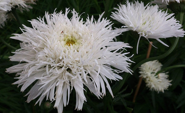 Нивяник Aglaia (Аглая). Изумительные белые махровые цветы с узкими рассечёнными лепестками, верхние ряды укороченные игольчатые, вокруг жёлтого центра, очень длительное цветение с июня по сентябрь.