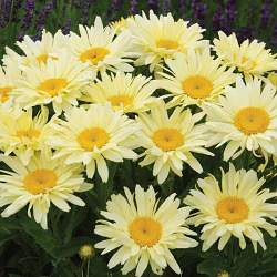 Нивяник великолепный Banana Cream (Банана Крим). У этого сорта непривычная для нивяников окраска цветка. Полумахровые соцветия-корзинки диаметром 10 см распускаются желтыми, потом постепенно бледнеют и со временем становятся цвета слоновой кости с яично-желтой серединкой.