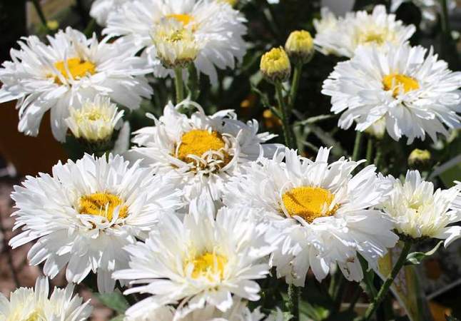 Нивяник Белые Лебеди. Сорт с крупными полумахровыми соцветиями, диаметром до 12 см. Высота куста 90 см. Очень хорошо стоит в срезке. Предпочитает полное солнце.