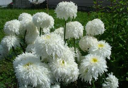 Нивяник Fiona Goghill (Фиона Гогхилл). Цветки крупные, кремово-белые махровые помпоны с золотистым центром. Прочный куст с темно-зелеными листьями. Цветет все лето. Предпочитает увлажненные песчаные почвы и солнечное местоположение. Цветки удивительно привлекательны и долго сохраняются.