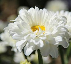 Нивяник великолепный Victorian Secret (Викториан Секрет). Высота до 40 см. Цветы полумахровые, белые с желтым центром. Цветет с июля до морозов. Замечательный низкорослый сорт который можно высаживать на переднем плане миксбордеров и даже в альпинариях и рокариях. Также из этого нивяника получаются красивые бордюры.