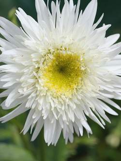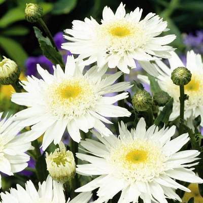 Нивяник Wirrel Supreme (Виррал Сюприм). Полумахровые цветки делятся на внутренние — лимонного цвета, короткие, плотно прилегающие к желтому центру, и внешние — длинные, белые. Листья тёмно-зелёные, блестящие, стебли сильные.