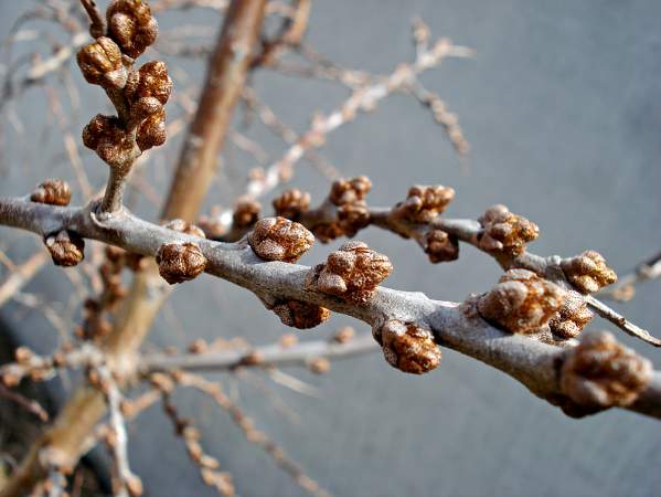 Облепиха Гном. Сорт-опылитель. Куст сдержанной силы роста, высотой 2-2,5 м, с компактной малогабаритной кроной. Характеризуется высокой зимостойкостью генеративных почек и высокой пыльцевой продуктивностью. Устойчив к болезням и вредителям.