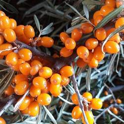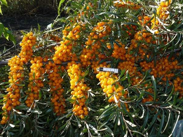 Облепиха Жемчужница. Сверхранний крупноплодный сорт. Куст древовидный, компактный, высотой 2-2,5 м. Крона овальная. Околюченность крайне слабая. Плодоношение на 3-й год.
