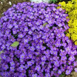 Обриета Audrie Mid Blue (Одри Мид Блу). Цветки глубоко-сиреневые с голубоватым оттенком. Многолетнее неприхотливое растение, устойчивое к болезням, вечнозеленое. Листья мелкие, серо-зелёные. Благодаря раннему цветению обриета является особенно ценным медоносным растением.